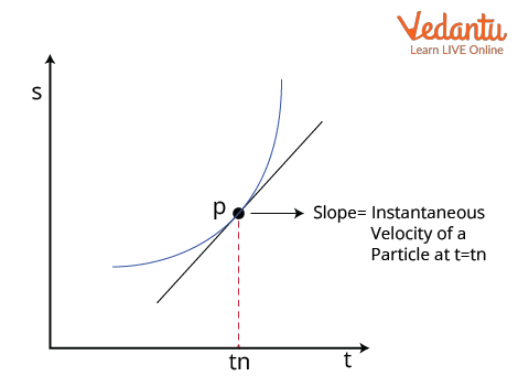 On a displacement–time graph, the instantaneous velocity at a particular time corresponds to the slope of the tangent drawn to the curve at that specific point. This demonstrates the rate of change of position at that exact instant.