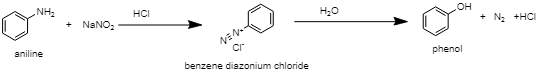 A primary amine can be converted into alcohol by the action of nitrous acid ($NaN{{O}_{2}}$ +$HCl$) on it. When nitrous acid ($NaN{{O}_{2}}$ +$HCl$) is treated with primary amines at a low temperature (273K – 278K), it gives rise to diazonium salt. When this diazonium salt is hydrolysed or treated with dilute acid, it forms alcohol. Along with the alcohol, side products like nitrogen (${{N}_{2}}$ ) gas and hydrochloric acid ($HCl$ ) are also formed.