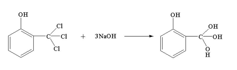 The reaction between phenol and carbon tetrachloride in presence of sodium hydroxide takes place in four steps.