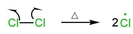But at high temperatures, chlorine undergoes homolytic cleavage to form chlorine free radicals.