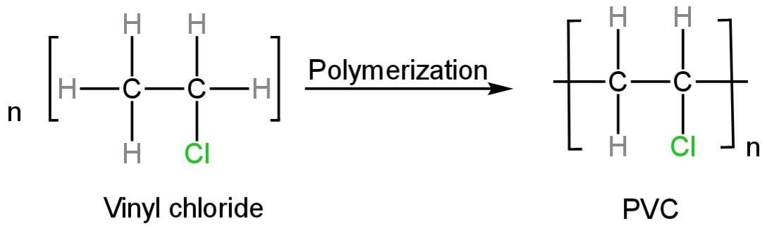 So, PVC is obtained from vinyl chloride by a reaction called polymerization.