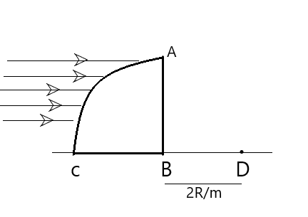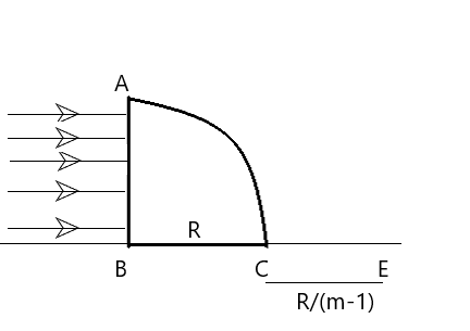 Quarter part of a transparent cylinder ABC of radius \[R\] is kept on a horizontal floor and a horizontal beam of light falls on the cylinder in the two different arrangements of the cylinder as shown in the figure (a) and (b). in arrangement (a) light converges at point D, which is at a distance \[2R/m\] from B and in arrangement (b) light converges at point E, which is at a distance \[2R/\left( {m - 1} \right)\] from C. find out the refractive index of the material.