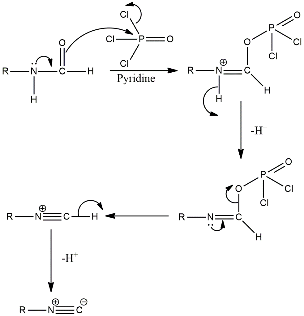 \[R - NH - COH\, \overset{POCl_{3},Pyridine}{\rightarrow} \, Product\]