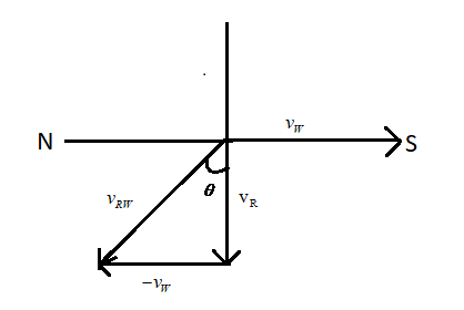 Now, the relative velocity ${v_{R/W}}$ is making an angle $\theta $ with the vertical axis.