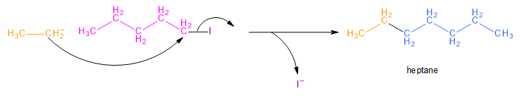 Image: Formation of heptane by \[{S_N}2\] attack.