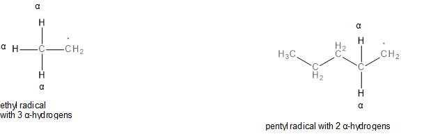 This means that there is a higher hyperconjugation effect in the ethyl radical compared to the pentyl radical and the higher the hyperconjugation, the more stable the radical will be. Hyperconjugation is not the only factor governing radical stability. It is advised that students learn about all the factors that affect the stability of reactive intermediates.