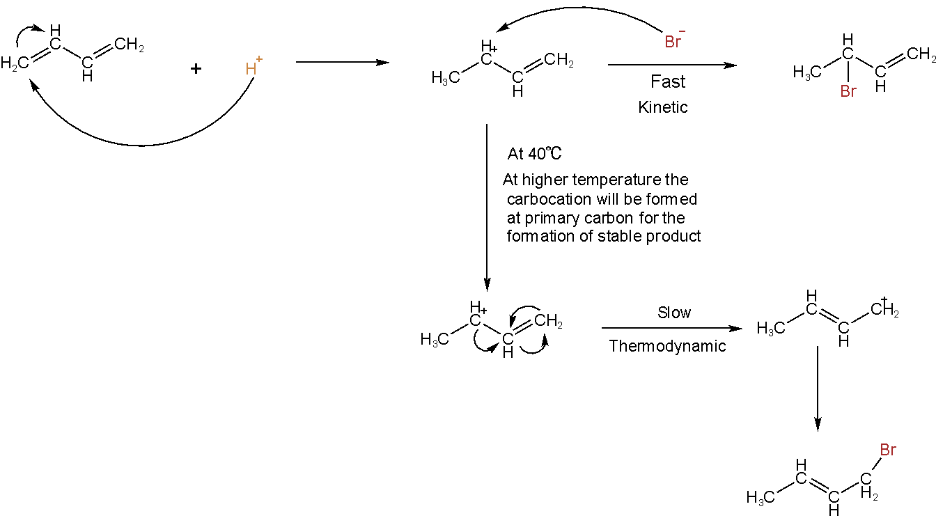 $CH_2=CH-CH=CH_2 + \ \ \ HBr\ \ \ \ \rightarrow CH_2Br-CH=CH-CH_3+{\rm CH}_3-CHBr-CH=CH_2$