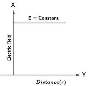 Hence, the electric field always remains constant for a given uniformly charged plane sheet with respect to distance from the plane sheet.