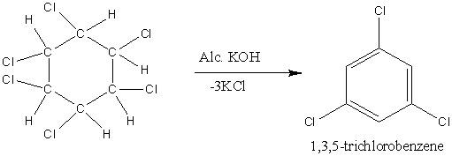 Image: Reaction of \[{{\rm{C}}_{\rm{6}}}{{\rm{H}}_{\rm{6}}}{\rm{C}}{{\rm{l}}_{\rm{6}}}\] with alcoholic KOH.