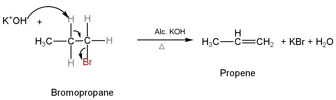 \[{\rm{C}}{{\rm{H}}_{\rm{3}}}{\rm{ - C}}{{\rm{H}}_{\rm{2}}}{\rm{ - C}}{{\rm{H}}_{\rm{2}}}{\rm{Br + KOH}}\left( {{\rm{alc}}{\rm{.}}} \right) \to {\rm{Product}}\]