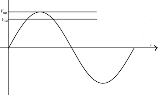 \[{V_{RMS}} = \dfrac{1}{{\sqrt 2 }}{V_{pk}}\]