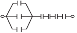 Seven capacitors each of capacitance $2\mu F$ are to be connected in a configuration to obtain an effective capacitance of $\dfrac{{10}}{{11}}\mu F$. Which of the following combinations shown below will achieve the desired result?