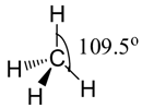 Four electron pairs arrange themselves in space in what is called tetrahedral arrangement. A tetrahedron is a regular triangularly-based pyramid. The carbon atom would be at the centre and the hydrogen at the four corners. All the bond angles are ${{109.5}^{\text{o}}}$.