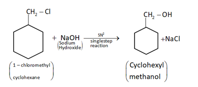 When chloromethylcyclohexane is treated with sodium hydroxide, then it will give cyclohexylmethanol by \[S{N^2}\]mechanism.