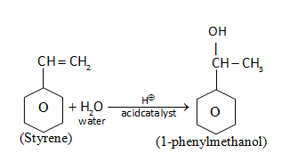 Alkene is treated with \[{H_2}O\]in the presence of acid (acid catalyzed hydrolysis) to give 1-phenylmethanol