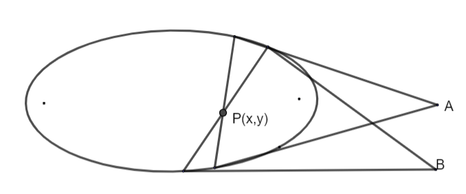 The line joining the points A and B will be termed as polar i.e., all the points we get after drawing two tangents w.r.t P (pole) will lie on a line which is called polar, and the equation of that line is T=0.