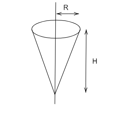 Shown in the figure is a hollow ice cream cone (it is open at the top). If its mass is M, the radius of its top, R and height, H, then find the moment of inertia about its axis.