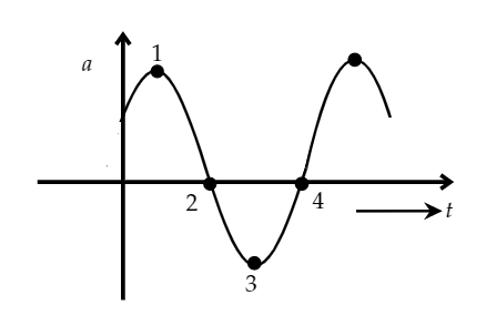 As we can see from the figure, the acceleration will be maximum and positive. Therefore, at point 1, ‘a’ will be maximum and positive.