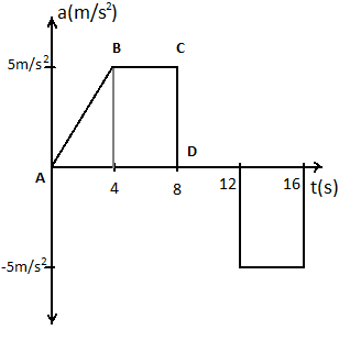 Now from the diagram given in the question, we can see that after $12s$ mark, the acceleration of the train is negative, so in order to calculate the maximum velocity, we can take the area under the graph before the 12s mark.