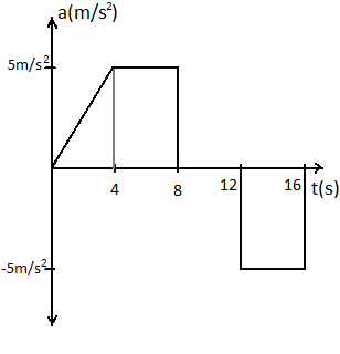 The acceleration of a train between two stations is shown in the figure. The maximum speed of the train is: