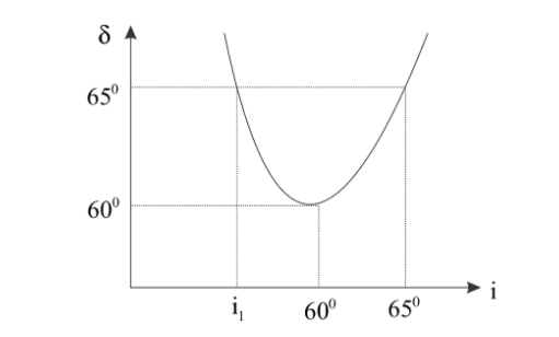 (D) For the deviation to be ${65^0}$ the angle of incidence to be ${i_1} = {55^0}$.