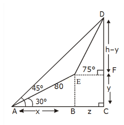 $\Rightarrow h=40\sqrt{3}+z\,\,\,\,........\left( i \right)$