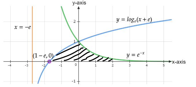 For \[y = lo{g_e}(x + e)\], we’ll shift the graph of the curve $y = {\log _e}x$, $e$ units at the left-hand side because at $y = 0$ the value of $x = 1 - e$
