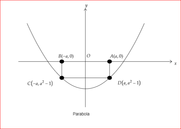 We get the \[y\]coordinate of the points \[\;C\] and \[\;D\] . Let us assume the coordinates of \[\;C\] and \[\;D\]such that \[\left( { - a,{a^2} - 1} \right)\] and \[\left( {a,{a^2} - 1} \right)\] respectively.