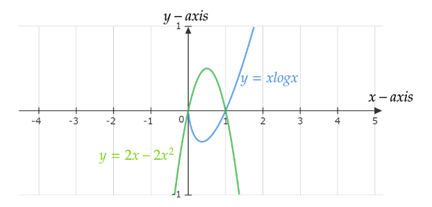 Equation of the two curves are \[y = xlogx\;\]and \[y = 2x - 2{x^2}\]