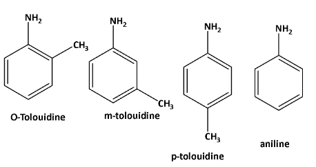 The structures of o—toluidine, m—toluidine, p—toluidine, aniline as follows,