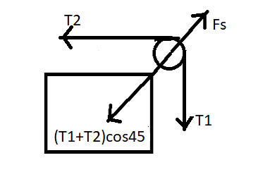 Taking ${T_1}, {T_2}, {F_S}$ As the tension force vertically, tension force horizontally, and force of support.