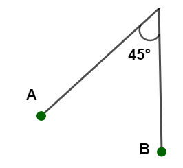 The bob A of a simple pendulum is released when the string makes an angle of ${45^ \circ }\] with the vertical. It hits another bob B of the same material and same mass kept at rest on the table. If the collision is elastic: