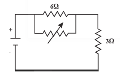 Total resistance here is $\text{R}=\dfrac{6\text{r}}{6+\text{r}}+3$