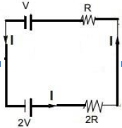 I = \dfrac{{2V - V}}{{R + 2R}} \\