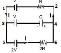 In the loop 43564, let the voltage across the capacitor be ${V_c}$. So, applying the Kirchhoff’s Law, we get –