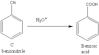 Let’s understand the third reaction. The acidic hydrolysis of benzonitrile gives benzoic acid.