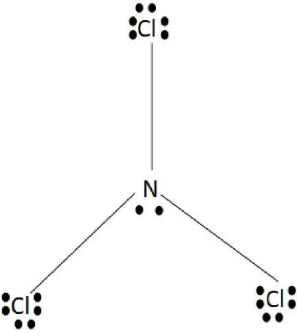 4. The nitrogen forms three bonds with the three chlorine atoms in which three electrons of nitrogen and three electrons of each chlorine are used to form a structure.