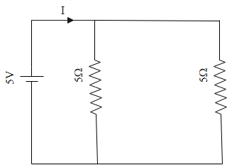 In the above diagram we can see that the resistances, 5 and 5 are in parallel connection.