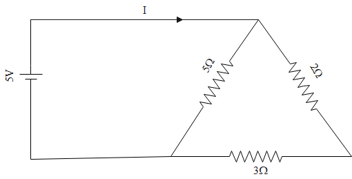 ${{R}_{eq}}=\dfrac{5}{2}=2.5\Omega $${{R}_{eq}}=\dfrac{5}{2}=2.5\Omega $