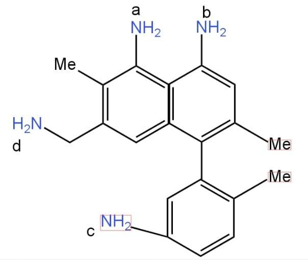 Now, in the other three nitrogens (a), (b), and (c), the basic character is determined by electronic factors and$-C{{H}_{3}}$. In nitrogen (c), the electron donating $-C{{H}_{3}}$ group is in para position to $N{{H}_{2}}$. So, its basicity is higher than nitrogen (a) and (b).
