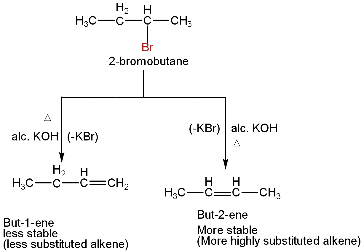 Note: In the given reaction, the halogen atom is present on a carbon atom within the chain due to which the alkyl halide can undergo two different types of reactions depending on the two different types of β-hydrogens available.