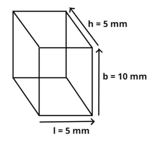 So let l = 5 mm, b = 10 mm and h = 5 mm.