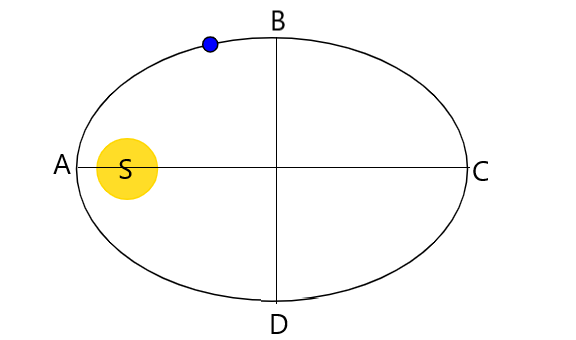 As we know that all objects including planets are attracted to each other by a force of gravity. So, in our case we have earth and sun and earth is moving in an elliptical orbit with the sun S at one of the foci.