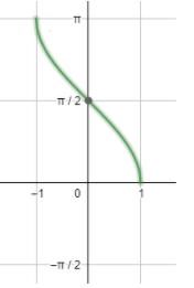 So, looking at the above graphs, we can draw the conclusion that ${{\cos }^{-1}}x$ is defined for all real values of $x\in [-1,1]$ , while its range comes out to be $\left[ 0,\pi \right]$ . The domain of ${{\sin }^{-1}}x$ is same as that of ${{\cos }^{-1}}x$ but its range is $\left[ -\dfrac{\pi }{2},\dfrac{\pi }{2} \right]$ .