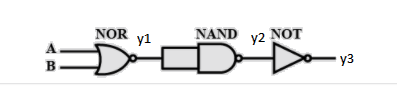 Here, ${y_1},{y_2},{y_3}$ are the outputs of NOR, NAND and NOT gates respectively . The final output is ${y_3}$.