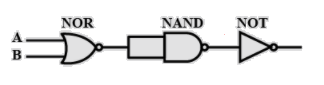 Hint: From the question we know that the circuit has a NOR gate, NAND gate, and a NOT gate. The input is sent to the NOR gate and the output of that becomes the input for NAND and the output of the NAND gate becomes the input for NOT gate. What exactly happens in each of these gates,