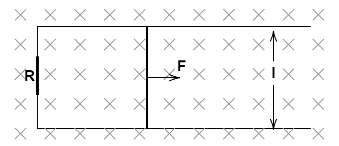 The figure shows a wire sliding on two parallel conducting rails placed at a separation $\prime I\prime $ . A magnetic field $B$ exists in a direction perpendicular to the plane of the rails. What force is necessary to keep the wire moving at a constant velocity $v$ ?