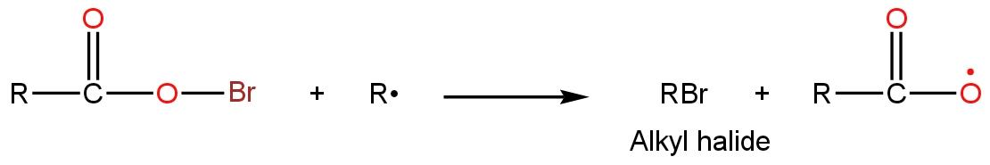 \[RCO{{O}^{-}}A{{g}^{+}}+\to RCOOBr\text{ }+\text{ }AgBr\]