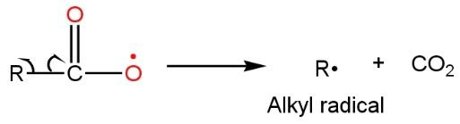 In the chain propagation step, acyl radical lose a molecule of carbon dioxide resulting in the formation of alkyl free radical such as