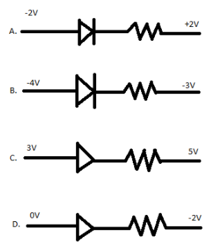 Note: In the case of reverse bias, the polarity of battery change and there current enters to n side (cathode) and leaves from p side (anode). We can see option(C) n side at higher potential (5V) and p side at lower potential (3V). So, it is the case of reverse bias diode circuits.